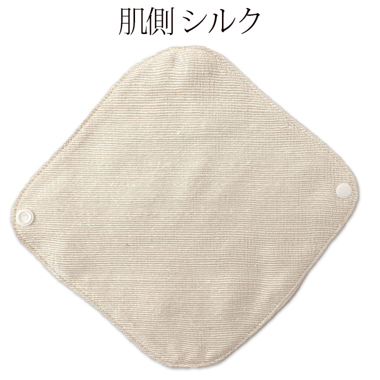 (1枚目)肌面:絹100% (2枚目)中面:綿100% (ベビーワッフル) (3枚目)裏面:綿100% ※綿は無漂白の自然綿 ※全てオーガニックコットン100%糸で縫製しています ※防水なしで通気性抜群 ※20年6月販売分から2枚→3枚に変更 サイズ 幅:約18.5cmx高さ:約17.5cm 商品紹介 ・「布ナプキンで冷え改善」がコンセプト。